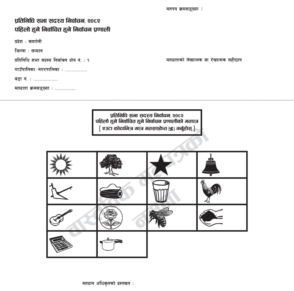 मतपत्र छपाइ जनक शिक्षा सामग्री केन्द्र लिमिटेड, सानोठिमीमा पुस २२ गतेदेखि सुरु भएको हो। छपाइ सम्पन्न भएका जिल्लाका मतपत्र प्याकिङ गरी ढुवानीसमेत सुरु गरिएको आयोगले जनाएको छ।