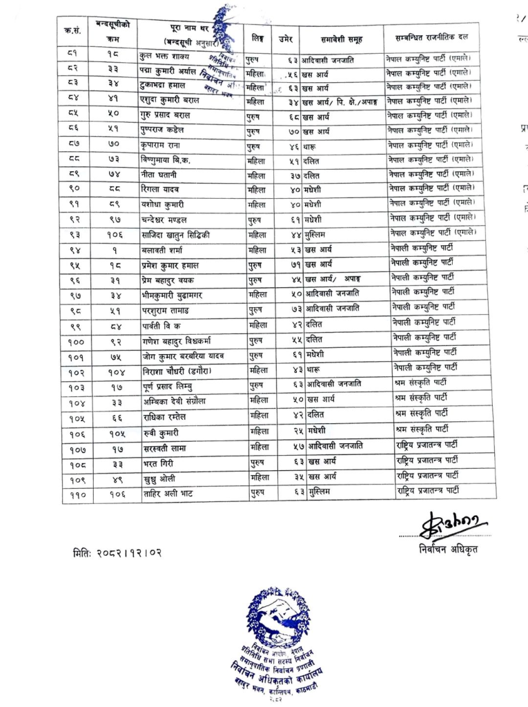 निर्वाचन आयोगले गत फागुन २१ गते सम्पन्न प्रतिनिधि सभा सदस्य निर्वाचन अन्तर्गत समानुपातिक तर्फ निर्वाचित ११० जना सांसदलाई आज प्रमाणपत्र प्रदान गर्ने भएको छ। आयोगले विभिन्न राजनीतिक दलहरूले प्राप्त गरेको मतको आधारमा समानुपातिक सांसदहरूको सूची केहि दिन अघि सार्वजनिक गरिसकेको छ।